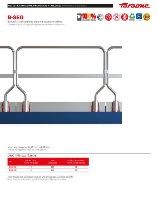Barandilla de seguridad B-SEG100 para altillos y entreplantas. 100 cm de largo