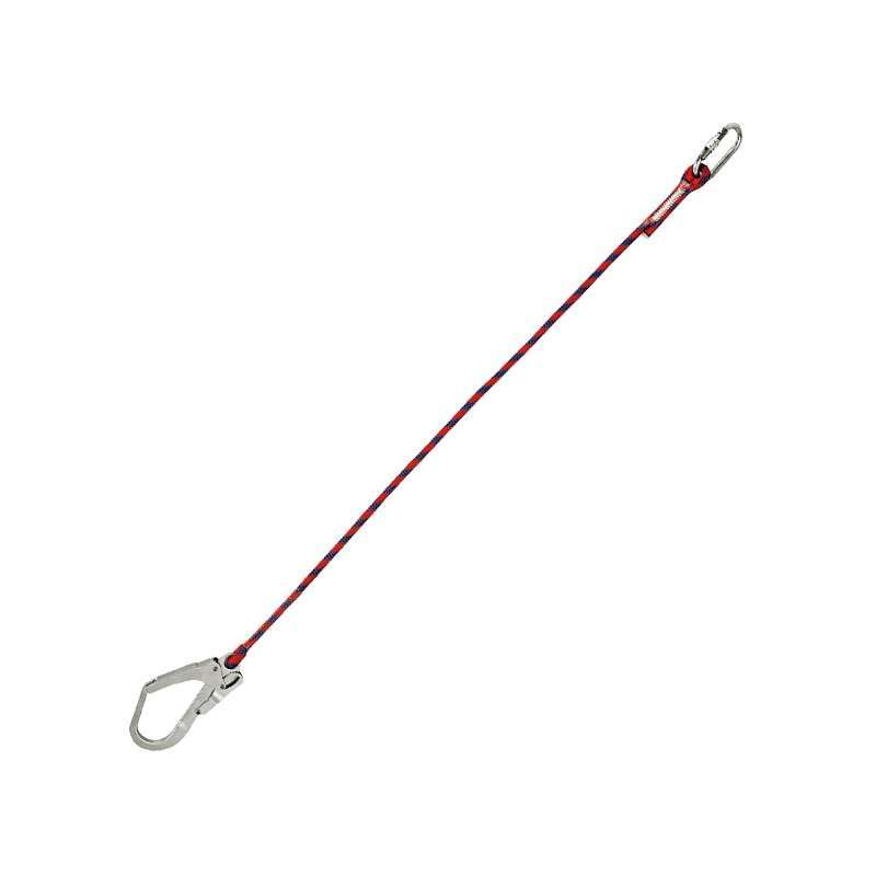 Los dos extremos del elemento de amarre cuentan con una gaza ingerida de poliamida de color rojo, que actúa como guardacabos para proteger la cuerda del desgaste causado por los conectores de unión.