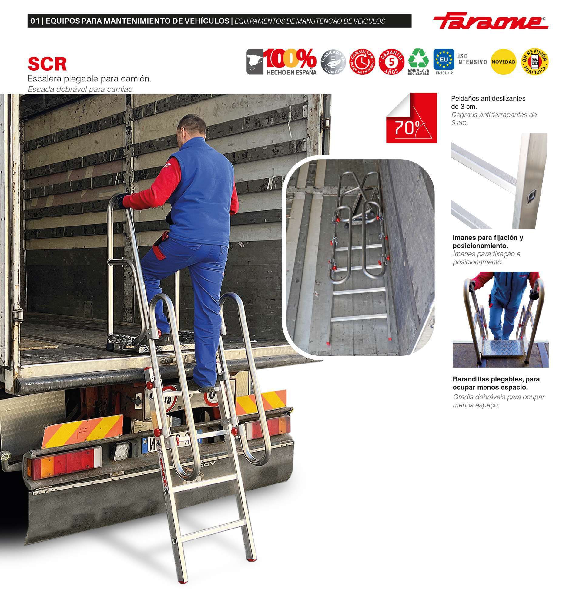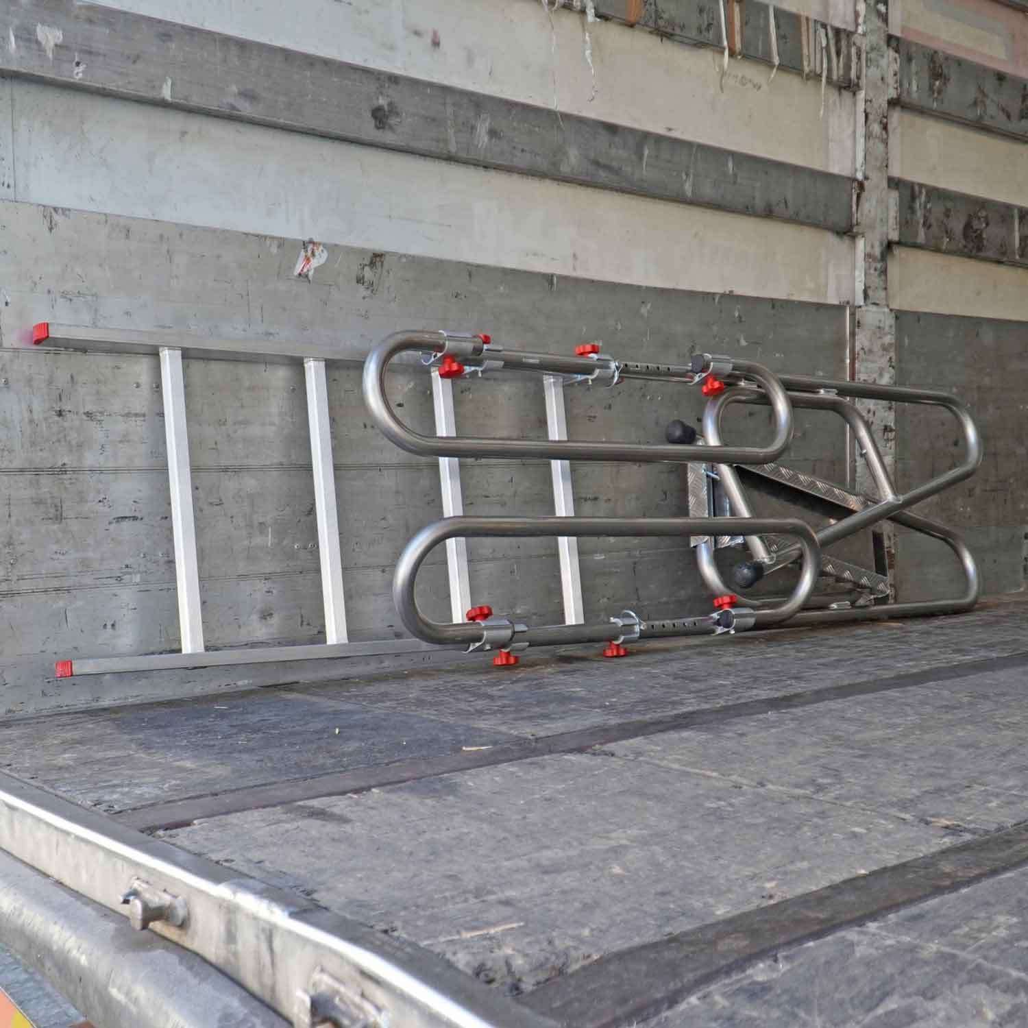 Escalera plegable para camión, diseñada para uso intensivo. y fabricada en aluminio resistente, que combina ligereza y durabilidad.