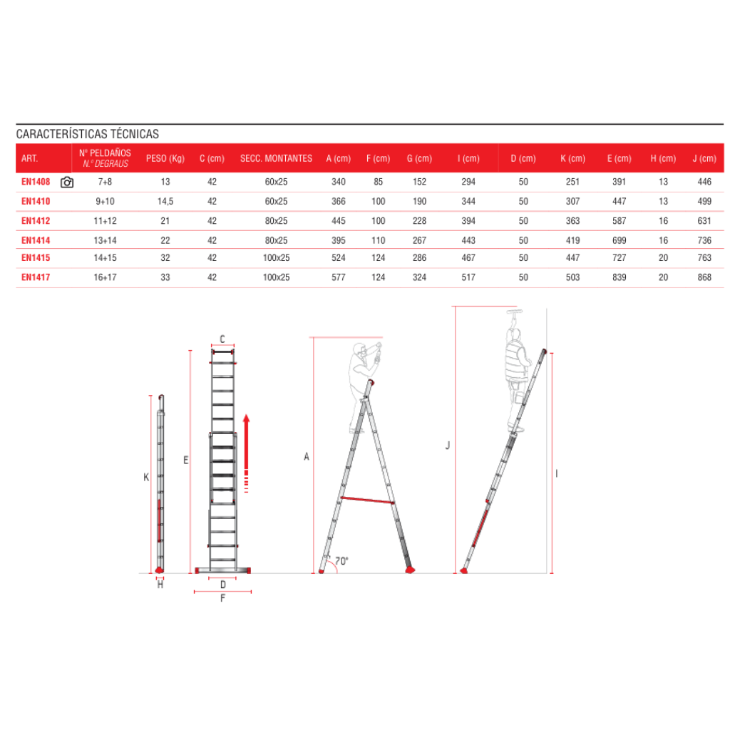 Escalera Extensible Doble Faraone EN1408 n° peldaños 7+8