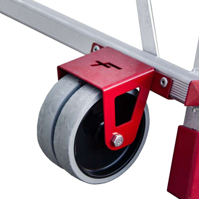 Para facilitar su desplazamiento, la escalera cuenta con dos ruedas traseras de 8 cm de diámetro.