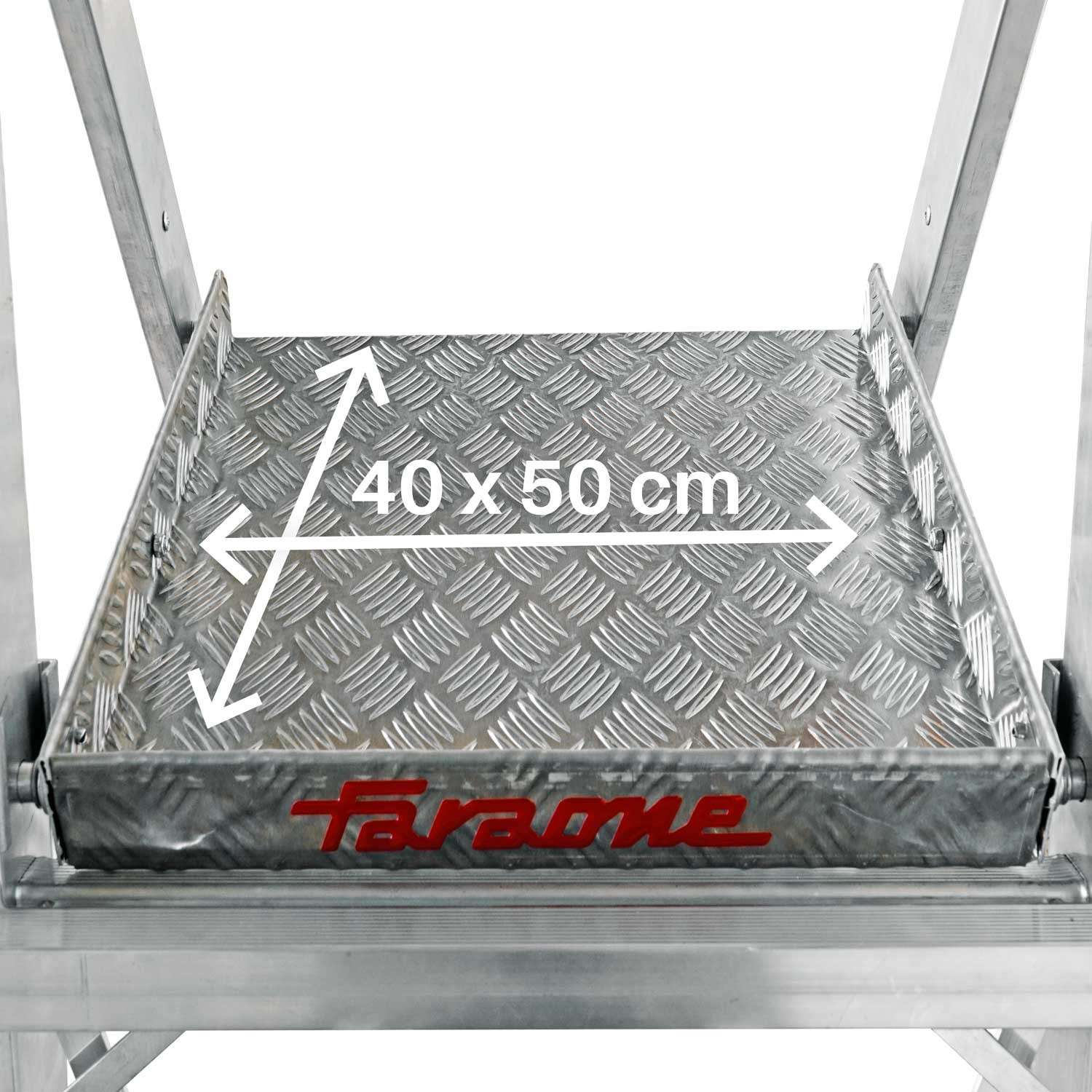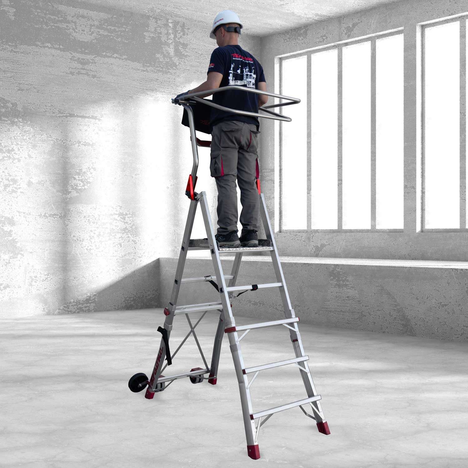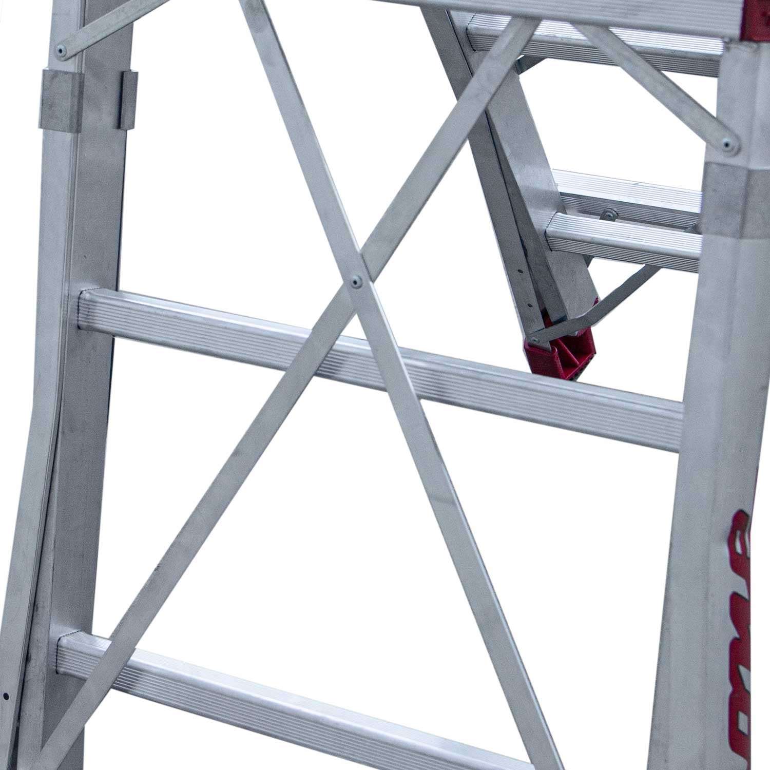 Su diseño incorpora un innovador sistema de plegado con bloqueo de seguridad contra apertura accidental, lo que garantiza un uso práctico y seguro. Fabricada en aluminio, combina resistencia y ligereza, y cuenta con ruedas dobles que facilitan su transporte incluso en los lugares de trabajo más exigentes.