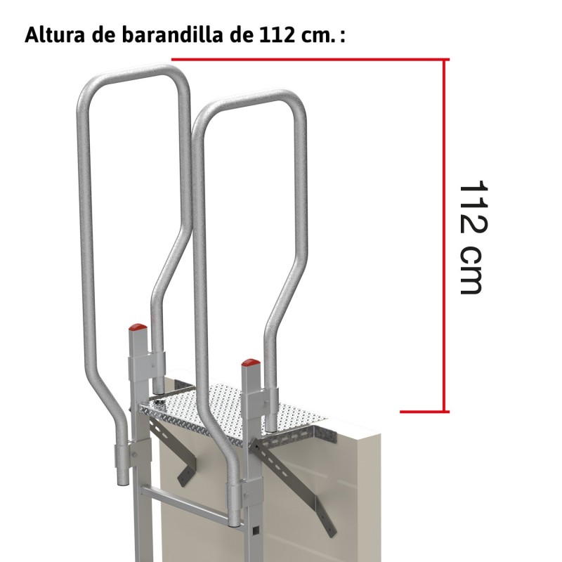- Barandilla de 112 cm de altura posicionada en la parte de arriba para salir con seguridad.