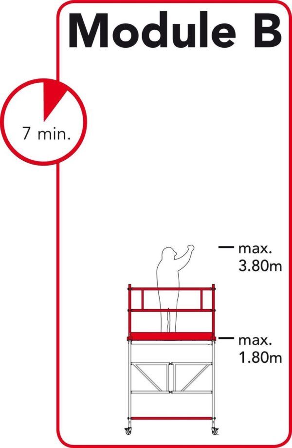 La principal ventaja de este producto es su rápido montaje, ya que dispone de módulos a diferente altura que, combinados, alcanzan una altura de hasta 4,5 m. Obligatorio el anclaje de la estructura a partir de 3 metros de altura.