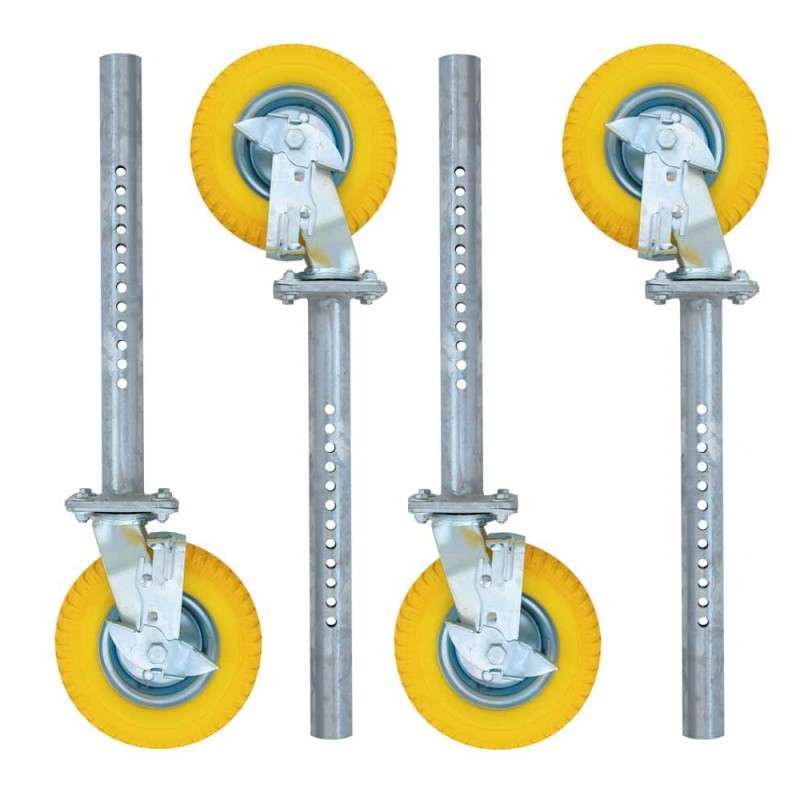 Compatible con andamios de diferentes marcas. Su diámetro es de 200 mm. Disponen de freno.
